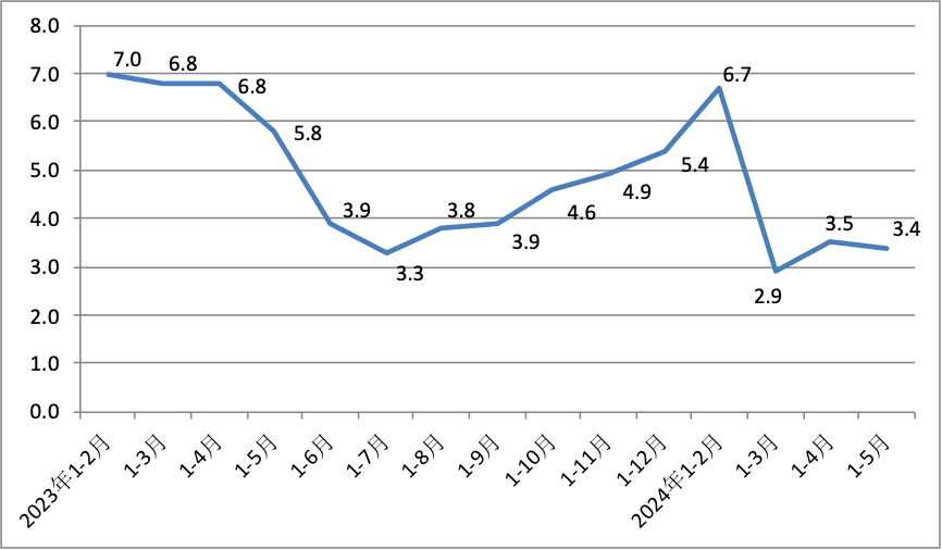 圖7:2023-2024年月度累計固定資產(chǎn)投資同比增速(%)