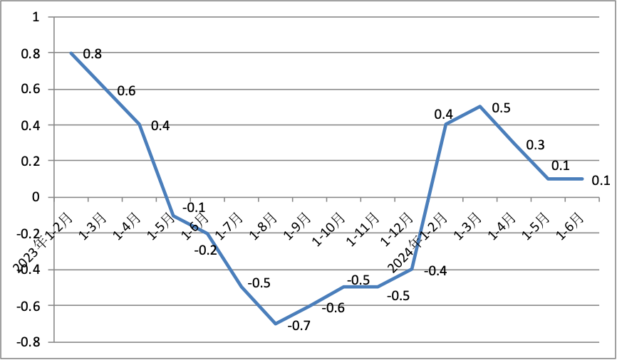 1-6月份CPI同比上漲0.1%,比上年全年上漲0.2%回落0.1個百分點,比上年同期上漲0.7%回落0.6個百分點。消費領域價格仍在低位運行,反映出消費領域價格上漲的動力還很不足。