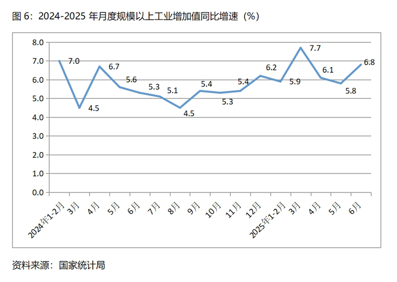 下半年GDP保持4.8%以上的增速,有政策實(shí)施、有趨勢(shì)慣性以及上年穩(wěn)定基數(shù)等因素的支撐。上半年積極的財(cái)政政策通過(guò)擴(kuò)大支出、適度寬松貨幣政策通過(guò)降準(zhǔn)降息、擴(kuò)大內(nèi)需通過(guò)設(shè)備更新和以舊換新等政策措施,在下半年將會(huì)繼續(xù)發(fā)揮作用,加之下半年積極財(cái)政政策和適度寬松貨幣政策的繼續(xù)實(shí)施,“兩重”、“兩新”政策等一系列政策措施的落實(shí),對(duì)下半年經(jīng)濟(jì)增長(zhǎng)形成了有力支持。上半年GDP的較快增長(zhǎng),對(duì)下半年GDP增長(zhǎng)發(fā)揮著慣性的作用,加之下半年GDP增長(zhǎng)基數(shù)與上半年基數(shù)均是5.0%,穩(wěn)定的基數(shù)有利于下半年GDP增長(zhǎng)4.8%以上。