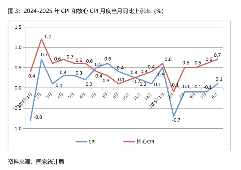 扣除食品和能源價(jià)格的核心CPI保持了上漲態(tài)勢(shì),但漲幅較為有限。上半年核心CPI上漲0.4%,其中1月份上漲0.6%,2月份下降0.1%,3月份以來(lái)漲幅呈現(xiàn)回升的態(tài)勢(shì),3月份和4月份均上漲0.5%,5月份上漲0.6%,6月份上漲0.7%。從核心價(jià)格變動(dòng)走勢(shì)看,今年以來(lái)經(jīng)濟(jì)運(yùn)行表現(xiàn)出活力有所增強(qiáng)的態(tài)勢(shì)。