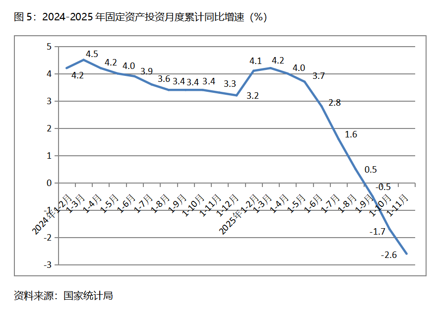 1-11月份,固定資產投資累計增速快于或持平固定資產投資總額下降2.6%的行業(yè)共6個,即電力、熱力、燃氣及水的生產和供應業(yè)增長10.7%,采礦業(yè)增長4.0%,制造業(yè)增長1.9%。農林牧漁業(yè)增長0.3%,交通運輸、倉儲和郵政業(yè)下降0.1%,文化、體育和娛樂業(yè)下降2.6%。
